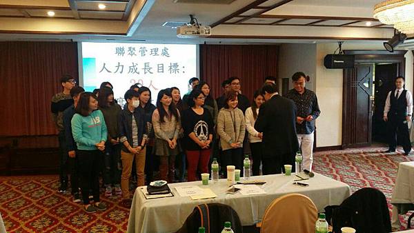 在聽完績優分享後,課程也來到了業務目標設定的時間,各管理處的總監帶領旗下的業務經理,一同協助管理處同仁制定具體的年度業績目標