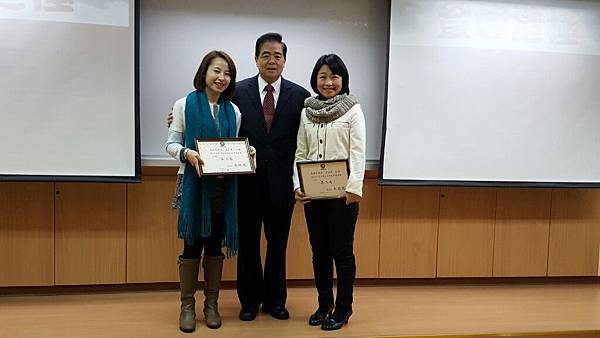 緊接著頒發的是104年度第四季北部地區所有績優的夥伴,恭喜襄理階的公教管理處 許子晴襄理、北聯管理處 楊筠珊襄理(主管代領),如下方照片。