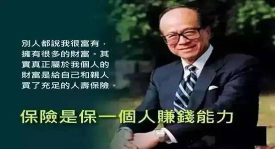 富比士香港富豪榜中坐擁313億美元身家的李嘉誠連續17年成為香港首富。許多人不解,為什麼李嘉誠那麼有錢的人也要買保險?難道他的財富還不足以抵禦風險嗎?而首富李嘉誠是這樣解讀的,「別人都說我很富有,擁有很多的財富,其實真正屬於我的個人的財富是給自己和親人買了充足的人壽保險」。